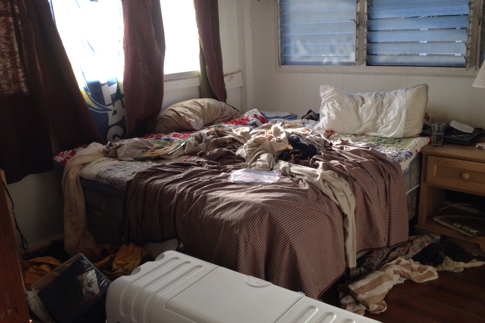 7/25: Friday – David returns with large bag of weed. Tells me he has been growing in Wainiha. Dozens of people stop by and David distributes. He demands services – help on boat, help with landscaping, etc. in return for the weed. People hang out here until about 2:30am. Much drinking, loud music, lights on in the carport, while weed and cigarette smoke flow into my room.