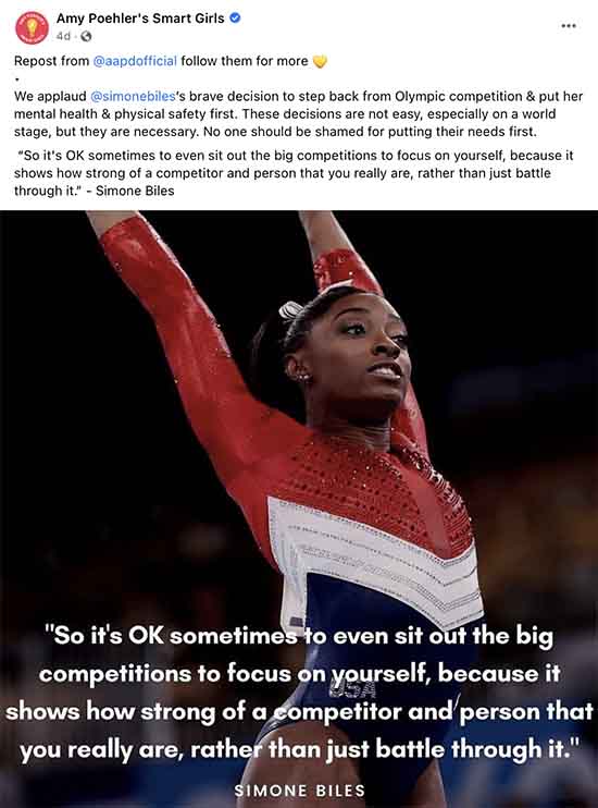 Unfortunately, the world of social media has turned this episode into another ugly political event. Amy Poehler’s Smart Girls believe they are being compassionate. Maybe, but they aren’t smart. Simone didn’t need to withdraw. Most importantly, Simone didn’t know the future. She quit without trying again.