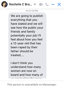 We are going to publish everything that you have stated and we will see how the public your friends and family potentially your job I’ll feel about how you feel a 12-year-old that has been raped by their father should be treated….