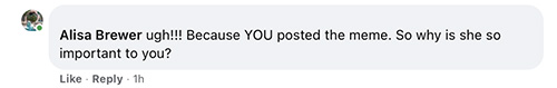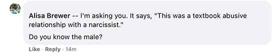 A couple more women popped in to verbally abuse me, call me names, and Alisa Brewer unfriended and blocked me. That’s the typical pattern of a bully, manipulator and gaslighter. Haven sure is a cute youngster. Sad she must live around abusive women. She simply wants more peace in her world.
