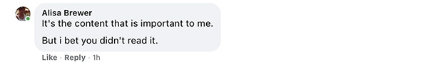 Instead, she now calls me names, condescends me, and HONESTLY, now claims the only reason she’s even engaging in this conversation is to see how far I take it. HONESTLY!!!