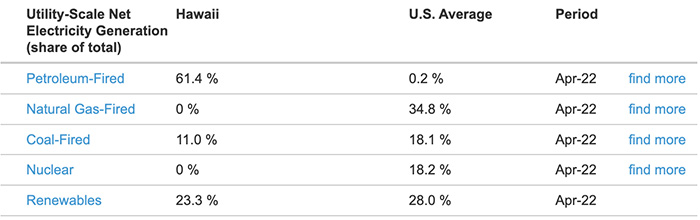 Incompetent Hawaiian Electric Company and wealthy short-sighted elected officials nevertheless decided it makes economic and environmental sense to end coal use and rely on more petroleum-generated energy production, although only 0.3% of electricity in the U.S. is generated using petroleum.