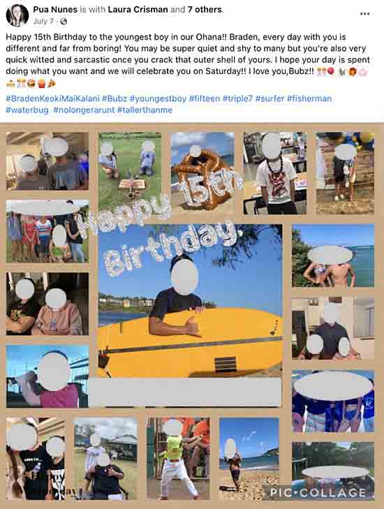 The football player is my son who is well provided for. Pua is his step-mother. I ask if you would please take his picture down. Thank you