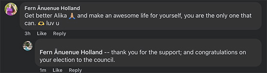 This behavior is protected by Fern Ānuenue Holland. She doesn’t stand up to uncivil people who are friends or relatives. This local group furthers hostility, aggression and the cancel culture of the political Left.