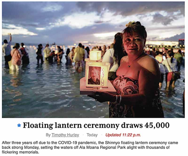 An estimated 45,000 people attended the Floating Lantern Hawai’i event last evening. All we simply request is that Shinnyo-en host their event on Sunday. How about Memorial Weekend — rather than a single day? Sunday for civilians: your grandfather, my mother, your parents. Monday reserved ONLY for Americans who died while serving in uniform.