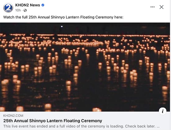 Shinnyo-en claims to seek harmony and peace among people. When the founder of Shinnyo-en visited Hawaii in 1970, he paid respects at Punchbowl and the Arizona Memorial. Profoundly moved by this experience, he was inspired with the wish to hold a lantern floating where people could share their hopes for peace.