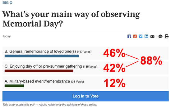 Majority of people in Hawai’i are not patriotic. Honolulu has the highest concentration of Asians in the nation (70%). Asian Americans are good people. Visitors from Japan are good friends. StarAd Big Q daily poll shows few locals think kindly and respectfully of our fallen heroes.