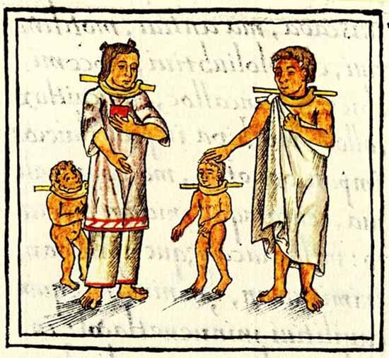 Slavery was common in American civilizations like the Aztec and Maya. Among the Aztecs, slavery was a punishment for a variety of crimes or even failure to pay taxes. Husbands and wives sold each other in times of economic hardship. Slaves were identified by wooden collars.