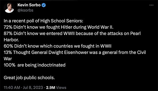 It’s not just the issue of slavery that our keiki do not understand, they have no functional understanding of U.S. and world history. Some 72% don’t know we fought Hitler in WWII; 87% didn’t know we entered WWII due to the attacks on Pearl Harbor. Seriously! But they know their pronouns.