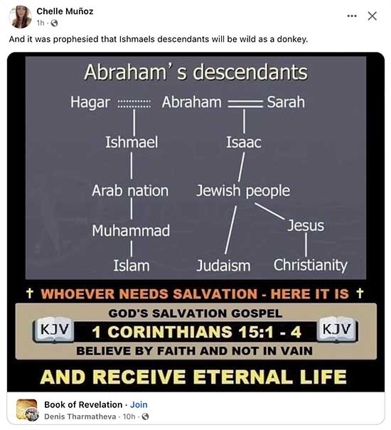 My friend on social media, Chelle Muñoz, who works at ProZone International, claims we should follow the predictions and prophesies of the ancient Hebrew god, “And it was prophesied that Ishmael’s descendants will be wild as a donkey.” I responded to her on Facebook. She unfriended me. Chelle Muñoz is not a kind, compassionate person. She’s quite evil for calling people donkeys. Racist individual.
