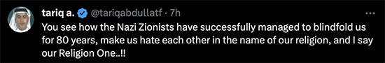 You see how the Nazi Zionists have successfully managed to blindfold us for 80 years, make us hate each other in the name of our religion, and I say our Religion One ..!!