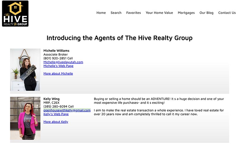 Utah Real Estate.com lists Hive Realty Group PLLC with Michelle Williams as broker, and Jamie Eddy as one of their agents.