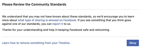 I’m aware of Facebook Community Standards. Nothing I posted or stated violates their guidelines. I clicked OKAY: