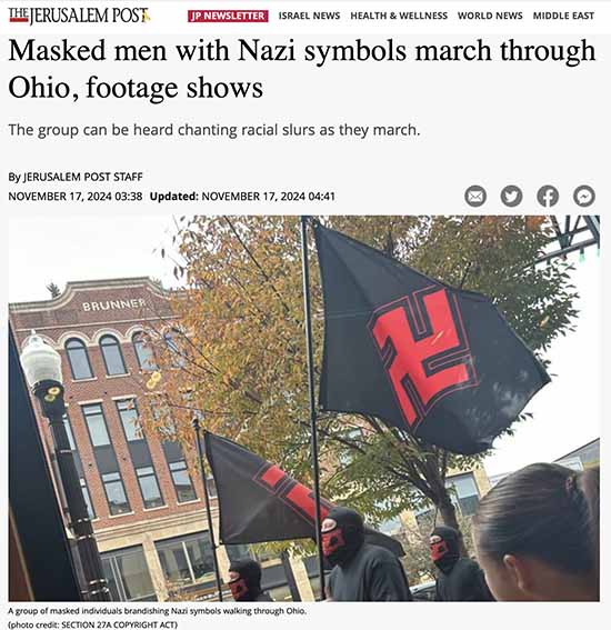 The Jerusalem Post captured the imagery of the recent march in Ohio. I took a screenshot of their article and posted to my Facebook page.