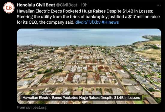UPDATE 3.21.25: Hawaiian Electric Execs Killed Locals; Received Huge Raises