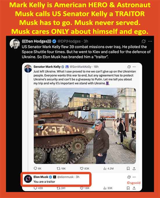 Musk Calls Hero Mark Kelly a TRAITOR