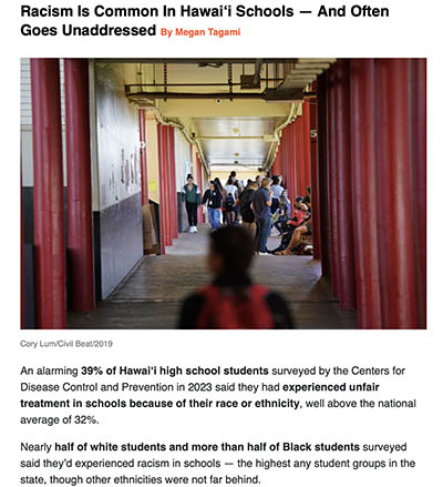 A recent study published in CivilBeat showed the racism, discrimination, bullying and intimidation by both Asian and Kanaka students is common toward Black, White and Brown cultures. Hawaii’s WOKE culture, led by professors at the University of Hawai’i and instructors at Kamehameha Schools, fuels the antagonist relationship.