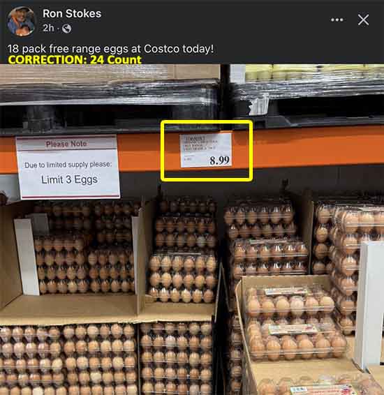 Costco Kirkland Cage Free LG 24-Count Egg Prices (3.13.25)