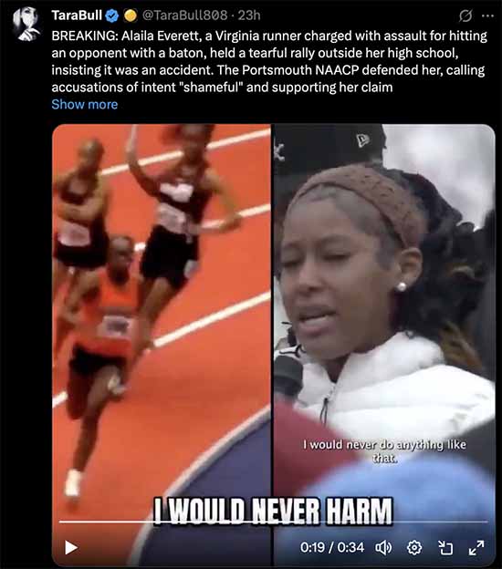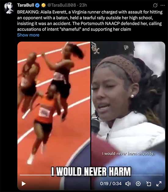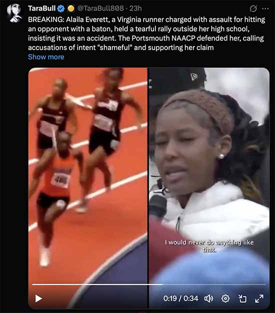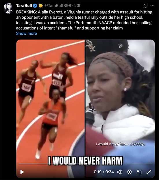 As a young athlete, medaled in track — 4 X 400-meter relay. Know a little about receiving, carrying and passing a baton to my teammates. Alaila Everett has been charged with assault for hitting an opponent, Kaelen Tucker, in her 4 X 200-meter relay at a state finals race March 4. Craziest thing I’ve ever seen in track.