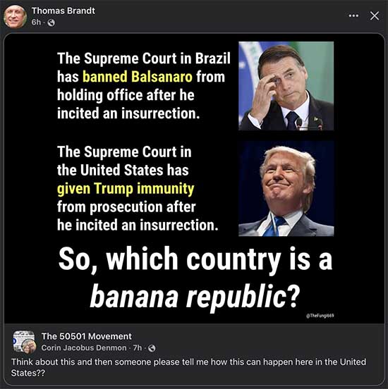 The meme asks, “Think about this and then someone please tell me how this can happen here in the United States?” Posted by Thomas Brandt. What is wrong with the political Left? Seriously? They’ve all gone bananas. SCOTUS gave Democrats the solution. Huge gift !!!
