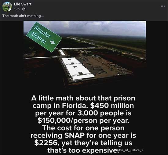 Elle posted today that MAGA RETARDS are spending some $150,000 per person per year to incarcerate illegal immigrants, totally over $450M per year. Comparatively, it costs only $2,245 per person per year to feed a poorer American on SNAP or food benefits.