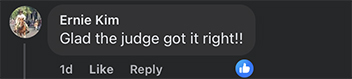 Gayle Nakama: Applauds the judge! I responded, “you then applaud RACISM. The judge CHEATED. You might want to get all the facts before supporting Asian Racism.”