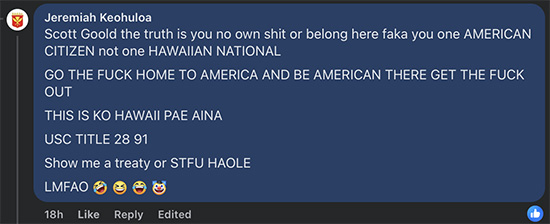 Scott Goold — the truth is you no own shit or belong here faka you one AMERICAN CITIZEN not one HAWAIIAN NATIONAL