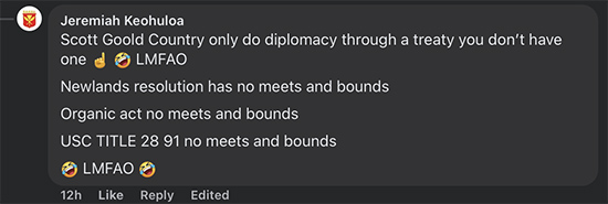 So, Jeremiah Keohuloa, show me the Kingdom of Hawai’i TREATY of Protection. His response, more foul, uncivil insults and ridicule: