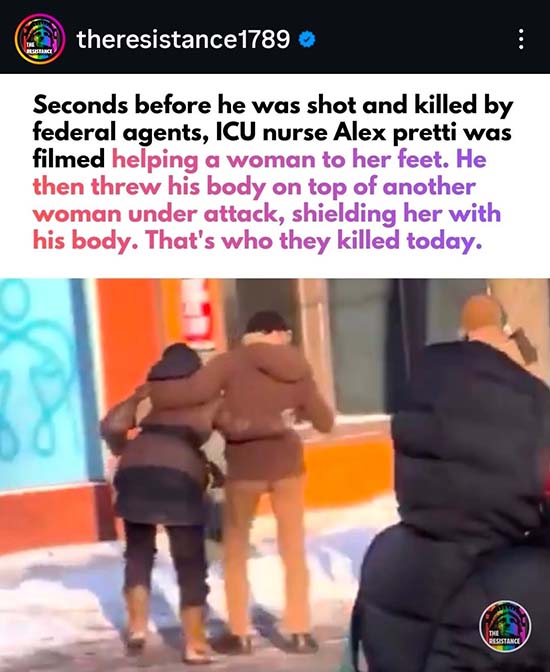 Alex Pretti died a hero. He saw two women being attacked and he stepped in to help. He was murdered by his government for it.